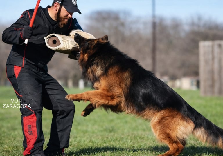 We engage in rigorous bite work protection training, enhancing the skills and behaviors of our German Shepherd.